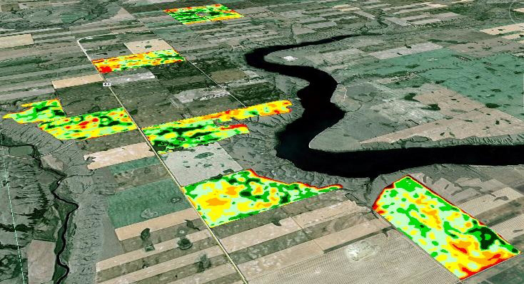 Digital map showing the condition and productivity of farmland.